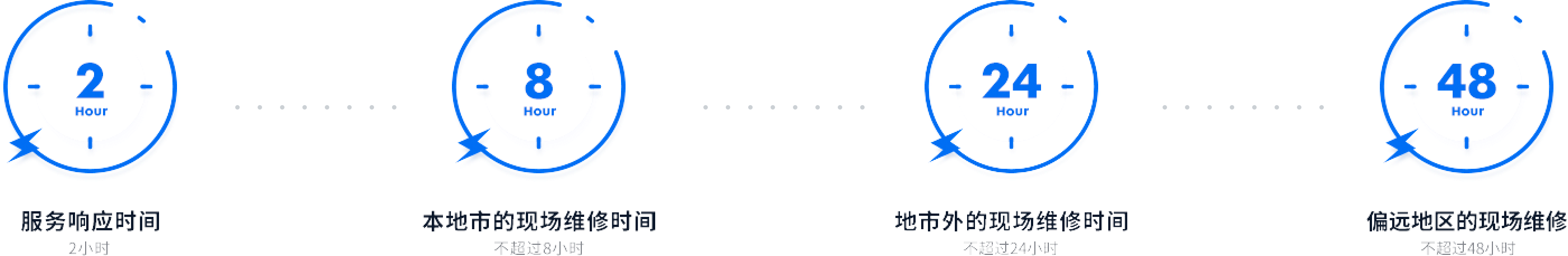 我方承諾在接到需方反映產品問顧后,及時溝通處理,收到用戶的通知后,將以最快的方式進行響應支持,根據(jù)公司(或分公司)距用戶的距離及交通便利情況及用戶的方便情況確定服務方案。平均服務響應時間為2小時,在本地市的現(xiàn)場維修到達時間不超過8小時,地市外的現(xiàn)場維修到達時間不超過24小時(大中城市),部分交通不便或邊地遠地區(qū)的現(xiàn)場維修到達時間不超過48小時。